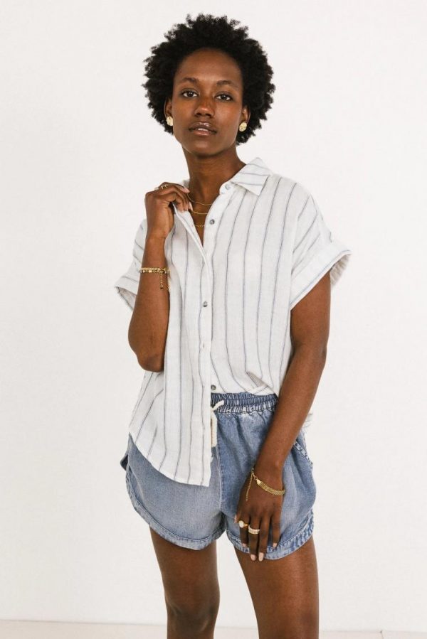 TOPS | Bohme Womens Topanga Striped Button Up in White