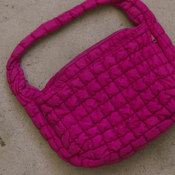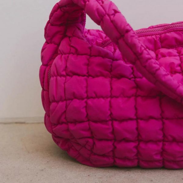 Quilted Puffer Bag Single Strap Zipper Closure Interior Zipper Pocket Two Interior Slip Pockets Two Exterior Zipper Pockets 100% Polyester Machine Wash Cold, Tumble Dry Low  Measurements: Length: 21.5″, Depth: 14″, Width: 5″, Drop Length: 10.5″ **For more specific information on the product, please feel free to email us at webteam@ bohme