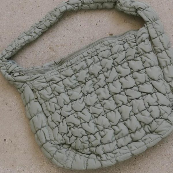 Quilted Puffer Bag Single Strap Zipper Closure Interior Zipper Pocket Two Interior Slip Pockets Two Exterior Zipper Pockets 100% Polyester Machine Wash Cold, Tumble Dry Low  Measurements: Length: 21.5″, Depth: 14″, Width: 5″, Drop Length: 10.5″ **For more specific information on the product, please feel free to email us at webteam@ bohme