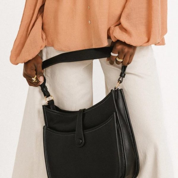 Vegan Leather Sealed Edges Gold Hardware and Snaps Two Compartments Inner Slip Pocket Strap Closure Hand Strap Adjustable and Removable Crossbody Strap Clean with a Soft Cloth and Warm Water Measurements: Height: 9.75″, Length: 11″, Width: 3.75″, Hand Strap Drop: 11″, Cross Body Strap Drop: Up to 26.5″ **For more specific information on the product, please feel free to email us at webteam@ bohme