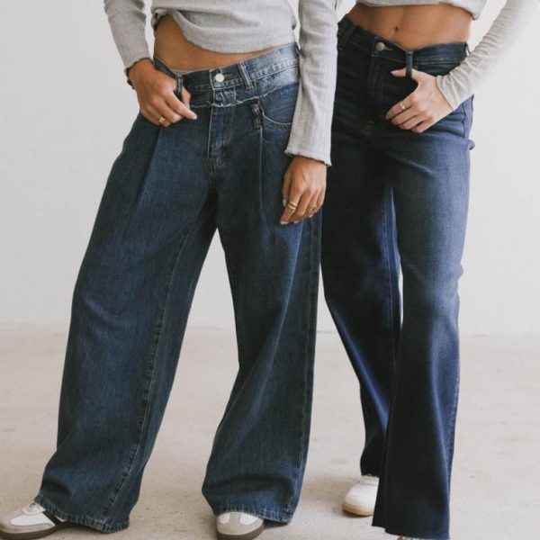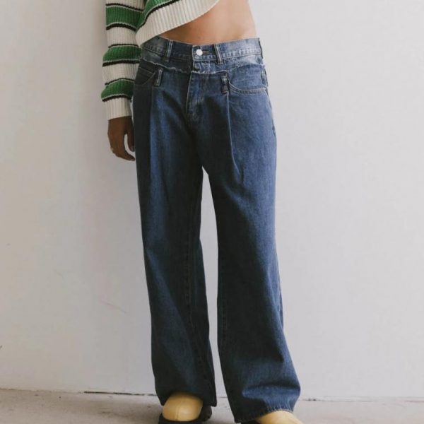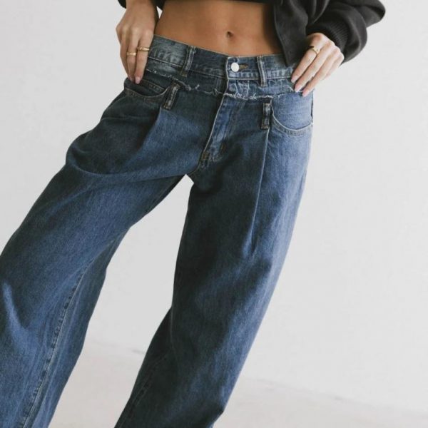 Mid Rise Baggy Fit Reconstructed Double Waistband Zipper with Button Closure Three Front Pockets Two Back Pockets Pleated Detail No Stretch Material 88% Cotton, 12% Polyester Hand Wash Cold, Line Dry Model Info Height: 5’8″ Wearing Size: Small