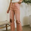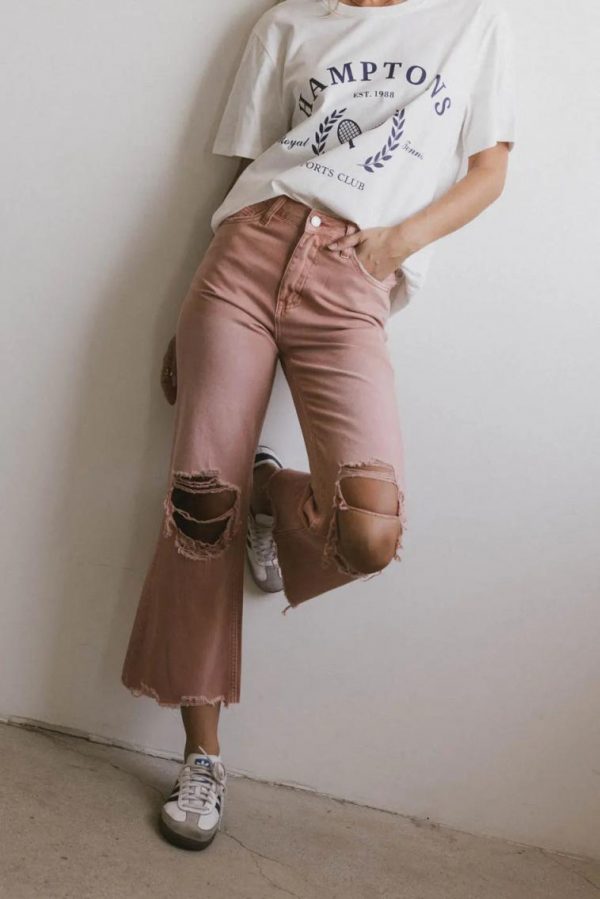 Button and Zipper Closure High Rise Vintage Flare Jeans Distressed Non Stretch Material Vervet Jeans 100% Cotton Machine Wash Cold Inside Out, Tumble Dry Low Model Info Height: 5’7″ Wearing Size: 24