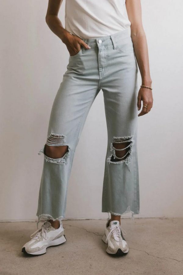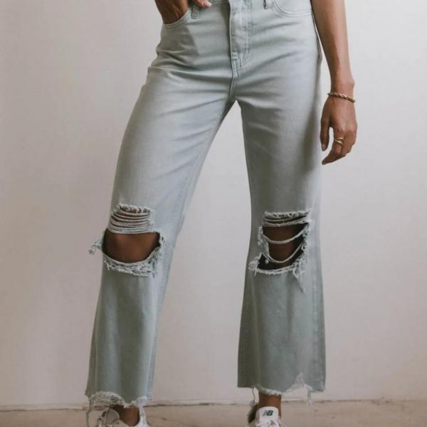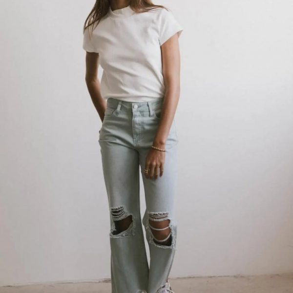Button and Zipper Closure High Rise Vintage Flare Jeans Distressed Non Stretch Material Vervet Jeans 100% Cotton Machine Wash Cold Inside Out, Tumble Dry Low Model Info Height: 5’8″ Wearing Size: 24