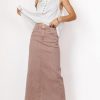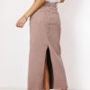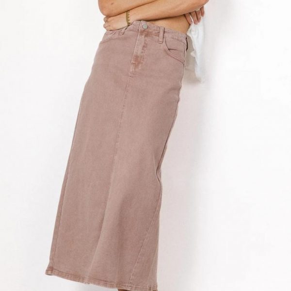 Denim Midi Skirt Button and Zipper Closure Two Hand Pockets Two Back Pockets Back Slit 98% Cotton, 2% Spandex Turn Inside Out, Machine Wash Cold, Tumble Dry Low Model Info Denim skirts are the trend of the season and the Harley Denim Midi Skirt in Mauve brings the heat. Dress it up with a blouse and some heels or keep things super casual with a graphic tee and some low profile sneakers. Height: 5’7″ Wearing Size: Small