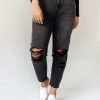 High Rise Button and Zipper Closure Distressed Raw Hem Non Stretch Material 94.3% Cotton, 5.7% Recycle Cotton Machine Wash Cold Inside Out, Tumble Dry Low Model InfoHeight: 5’8” Wearing Size: 24