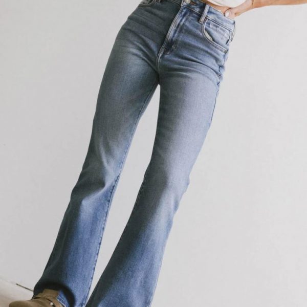 High Rise Button, Zipper Closure Two Front, Two Back Pockets Slight Flare Fit Stretch Denim Material 93% Cotton, 5% Polyester, 2% Spandex Machine Wash Cold, Tumble Dry Low  Model Info Height: 5’8″ Wearing Size: 24 Size 24 Measurements: Waist: 26″, Rise: 11″, Inseam: 31″