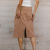 Knee Length Midi Button and Zipper Closure Two Hand Pockets, Watch Pocket Two Back Pockets 10.25″ Back Slit 98% Cotton, 2% Spandex Turn Inside Out, Machine Wash Cold, Tumble Dry Low  Model Info  Height: 5’8″  Wearing Size: Small