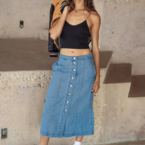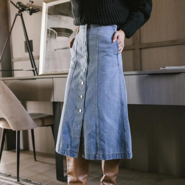 Kaylee Button Denim Skirt…