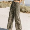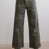 Button, Zipper Closure Belt Loops Leopard Print Wide Leg Fit Raw Hems Two Back Pockets 98% Cotton, 2% Spandex Hand Wash Cold, Hang Dry Model Info Height: 5’7″ Wearing Size: X-Small Fit: If Between Sizes, Size Down