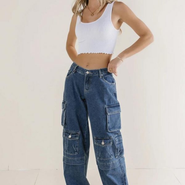 Low Rise Back Elastic Waist Button and Zipper Closure Two Front Hand Pockets Two Back Pockets with Button Closure Six Leg Pocket with Two Flap Closure, Two Zipper Closure, and Two Button Closure Non Stretch Material Straight Leg 100% Cotton Hand Wash Cold, Line Dry Model Info Height: 5’8″ 5’7″ Wearing Size: Small, Medium, Large