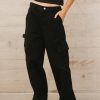 High Rise Back Elastic Waist Button and Zipper Closure Two Front and Two Back Pockets Two Leg Pockets Right Leg Utility Strap Non Stretch Material Straight Leg 100% Cotton Hand Wash Cold, Line Dry The Tyra Utility Jeans are the epitome of both function and style. These extra pockets are sure to bring you extra confidence while you’re waltzing through the mall, or out and about in the city. Pair with a chunky sneaker and a bandeau top. Model Info Height: 5’7″ Wearing Size: Small