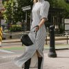 Mock Neckline Short Puff Sleeves with Cuffs Back Zipper Closure Front 17″ Slits Non Stretch Material Shell: 60% Polyester, 40% Cotton; Lining: 100% Polyester Machine Wash Cold, Line Dry Model Info Height: 5’7″ Wearing Size: X-Small