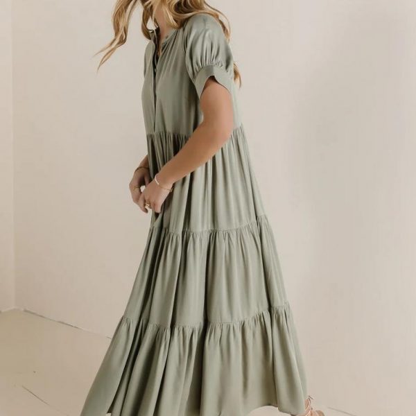Amanda Tiered Dress in Sage…
