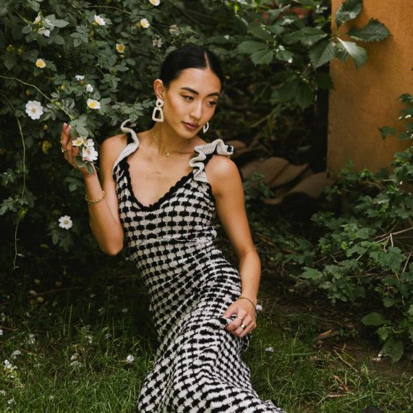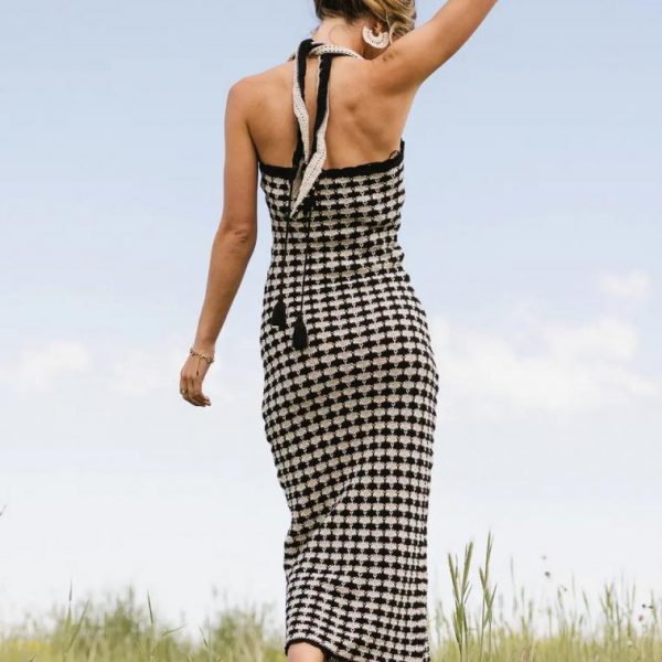 Crocheted Material V Neckline with Scallops Straps with Cinch Tassels Can Be Worn Two Ways: Tied Halter Top Cinched Ruffled Straps  Scalloped Hem Checkered Pattern Stretchy Material 60% Cotton, 40% Acrylic Hand Wash Cold, Hang Dry  We simply cannot get enough of the Amias Crocheted Midi Dress. This dress is so versatile and can easily be dressed up or down. Wear casually with a pair of flats, or stop the show in a formal pair of heels. Model Info Height: 5’7″ Wearing Size: Small
