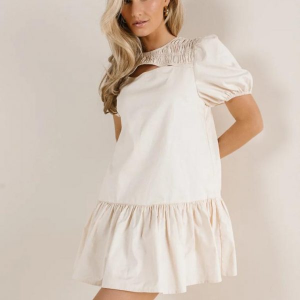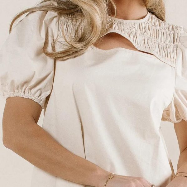 Round Neckline Cut Out Detail Short Puff Sleeves with Elastic Cuffs Back Keyhole Closure Non Stretch Material 100% Cotton Hand Wash Cold, Line Dry  Model Info  Height: 5’7″  Wearing Size: Small
