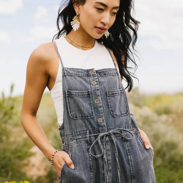 Denim Overalls Adjustable Spaghetti Straps Nine Button Closure, Five Hidden Seam Two Chest Pockets Two Hand Pockets Two Back Pockets Waist Tie with Metal Accents Non-Stretch Material 100% Cotton Hand Wash Cold, Hang Dry Say hello to the Annabella Overalls in Denim. This suit lays the groundwork for an amazing layered outfit. Between bralettes, tops, and essential tanks, you can dress it one thousand different ways. Model Info Height: 5’8″ Wearing Size: Small