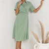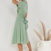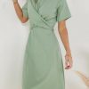 Collared Neckline Short Sleeves Three Button Closure Front Cross Tie Detail Belt Loops Two Hand Pockets Lined Self: 54% Rayon, 40% Nylon, 6% Spandex; Lining: 100% Polyester Hand Wash Cold, Lay Flat to Dry Model Info Height: 5’7” Wearing Size: Small Measurements: Bust: 36″, Waist: 27″, Length: 43″ **For more specific information on the product, please feel free to email us at webteam@ bohme