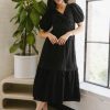 DRESSES | Bohme Womens Smocked Tiered Midi Dress in Pink