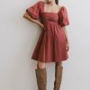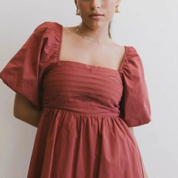 Horizontal Pleated Bust Square Neckline Short Puff Sleeves Elastic Shoulders Elastic Sleeve Cuffs Smocked Back Fully Lined Non Stretch Material Self, Lining: 100% Cotton Machine Wash Cold, Tumble Dry Low Model Info Height: 5’5″ Wearing Size: X-Small