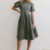 DRESSES | Bohme Womens Eliana Pleated Midi Dress in Sage