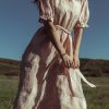 V Neckline Embroidered Elastic Waistband with Waist Tie Short Sleeves with Elastic Cuffs Non Stretch Material Lined Keyhole Closure on Back Self: 90% Polyester, 10% Tencel Lining: 100% Polyester Hand Wash Cold, Flat Dry The Gloria Embroidered Midi Dress is a beautiful addition to any closet. This dress is a great option for wedding goers and stands great on its own. Accessorize with some wedge heels and a simple cross body bag. Model Info Height: 5’7″ Wearing size: Small