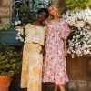 Watercolor Pattern Elastic V Neckline Elastic Underbust Short Flutter Sleeves Gusseted Sleeve Liner Fully Lined Two Hand Pockets Elastic Back Waist 100% Polyester Hand Wash Cold, Hang Dry Model Info Height: 5’7″ Wearing Size: Small