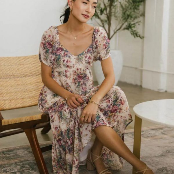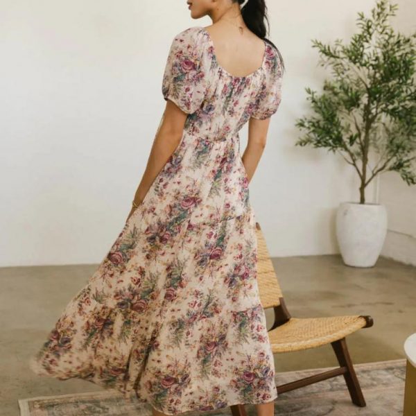 Sweetheart Neckline Short Puff Sleeves Elastic Shoulders and Cuffs Elastic Back of Waist Slightly See Through Three Tiered Skirt Two Hand Pockets Lined Dress, Unlined Sleeves Self, Lining: 100% Polyester Hand Wash Cold, Lay Flat to Dry Model Info Height: 5’8″ Wearing Size: Small