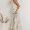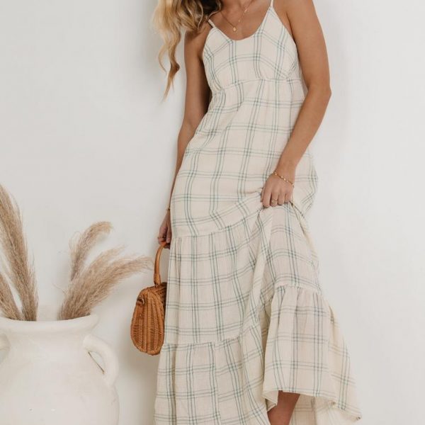 Tiered Maxi Dress Adjustable Straps Low Back With Adjustable Tie Elastic Empire Waist Mini Skirt Lining Self: 100% Cotton; Lining: 100% Rayon Hand Wash Cold, Line Dry Model Info Height: 5’7″ Wearing size: Small Small Measurements: Bust: 28″, Length: 57.5″ *For more specific information on the product, please feel free to email us at webteam@ bohme