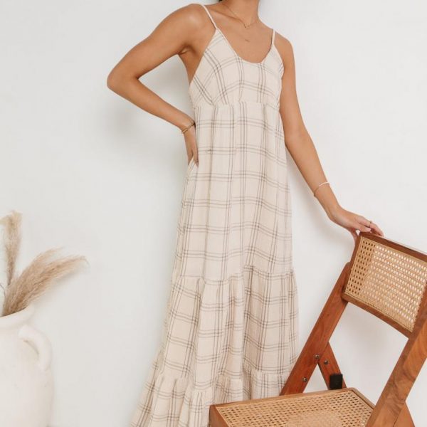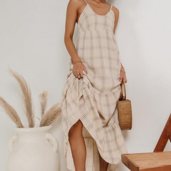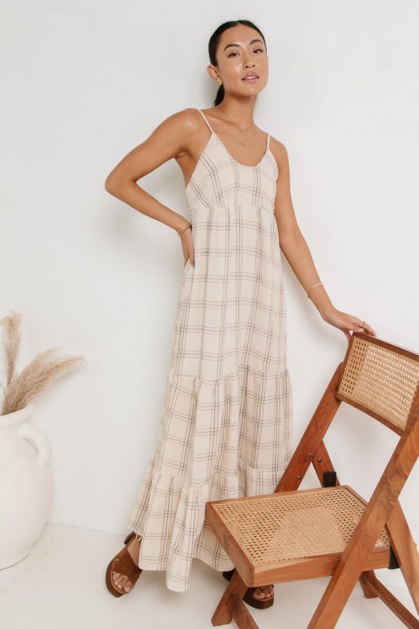 Tiered Maxi Dress Adjustable Straps Low Back With Adjustable Tie Elastic Empire Waist Mini Skirt Lining Self: 100% Cotton; Lining: 100% Rayon Hand Wash Cold, Line Dry Model Info Height: 5’7″ Wearing size: Small Small Measurements: Bust: 28″, Length: 57.5″ *For more specific information on the product, please feel free to email us at webteam@ bohme