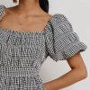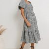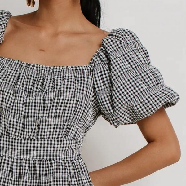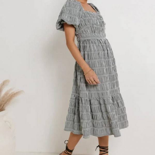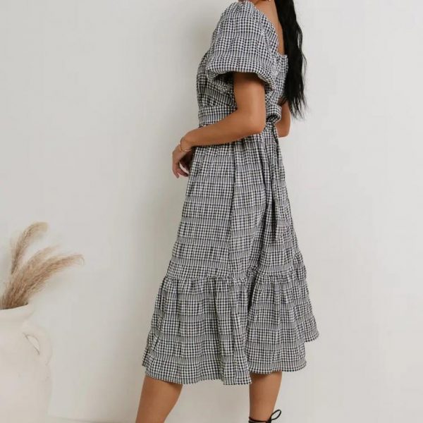 Square Neckline Midi Length Puff Sleeves with Elastic Cuff and Shoulders Two Hand Pockets Adjustable Waist Tie Tiered Detail on Skirt 79% Polyester, 20% Rayon, 1% Spandex Hand Wash Cold, Hang Dry Model Info Height: 5’8″ Wearing size: Small Small Measurements: Bust: 33″, Waist: 26″ ; Length: 43″ *For more specific information on the product, please feel free to email us at webteam@ bohme