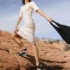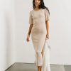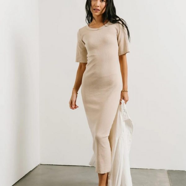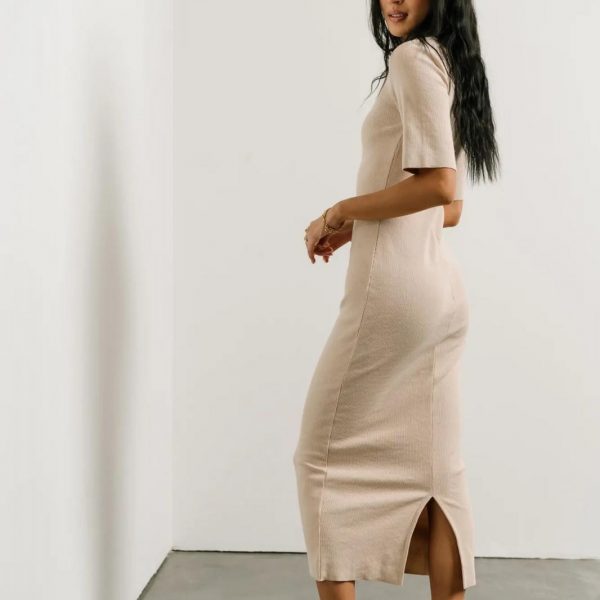 Round Neckline Short Sleeves Stretch Ribbed Material 8″ Back Slit 65% Cotton, 30% Polyester, 5% Spandex Machine Wash Cold, Line Dry Model Info Height: 5’8″ Wearing Size: Small Measurements: Bust: 29″, Waist: 25″, Length: 49″ **For more specific information on the product, please feel free to email us at webteam@ bohme
