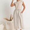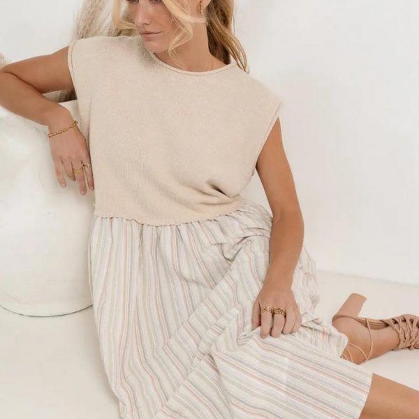 Knit Bodice Striped Multi Color Skirt Lined Skirt Non Stretch Skirt Material Stretchy Bodice Loose Fit Self: 60% Cotton, 40% Acrylic Contrast: 65% Polyester, 35% Cotton, Lining: 100% Polyester Hand Wash Cold, Line Dry Model Info Height: 5’7″ Wearing Size: Small Measurements: Bust: 42″, Waist: 36″, Length: 51″ **For more specific information on the product, please feel free to email us at webteam@ bohme