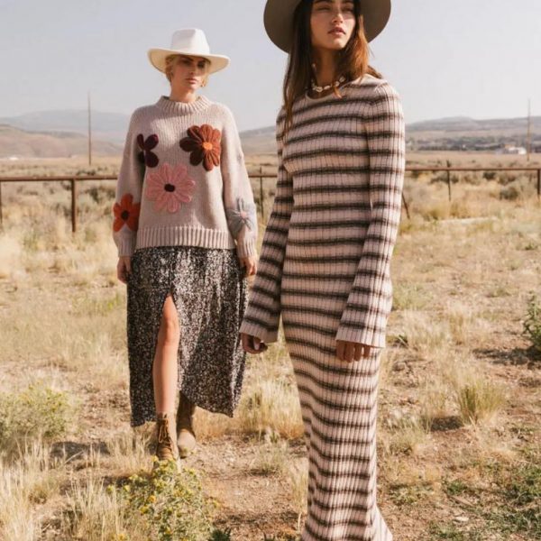 This is a Pre-Order Item, estimated ship date is 8/30/2024. For more information on preorders, click here.  Round Neckline Striped Pattern Long Bell Sleeves Fitted Silhouette Stretchy Ribbed Knit Material Hand Wash Cold, Flat Dry  Model Info Height: 5’8″ Wearing Size: Small Measurements: Bust: 24″-30″, Waist: 18″-24″, Length: 59″