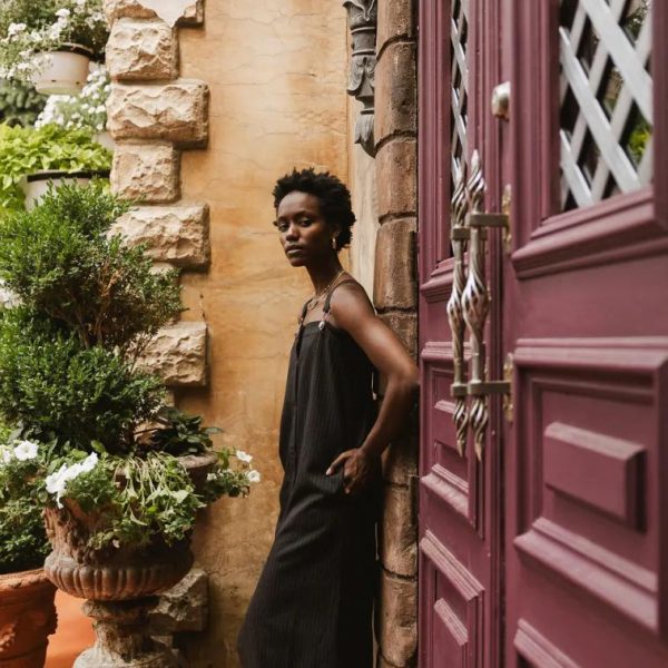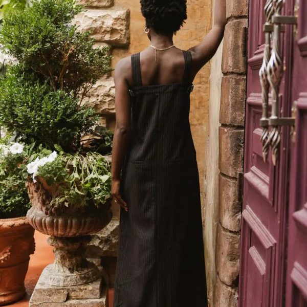 Shoulder Straps Overall Buckle Clasp Adjustable Bodice Side Straps Front Bodice Clap Closure Pin Stripe Pattern Two Hand Pockets Two False Pockets on Back Mini Skirt Lined Self: 66% Polyester, 32% Rayon, 2% Spandex Lining: 95% Polyester, 5% Spandex Hand Wash Cold, Hang Dry Model Info Height: 5’5″ Wearing Size: X-Small