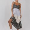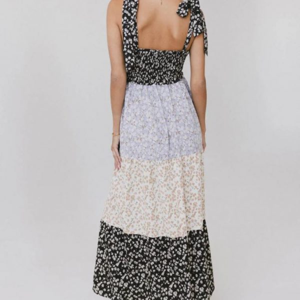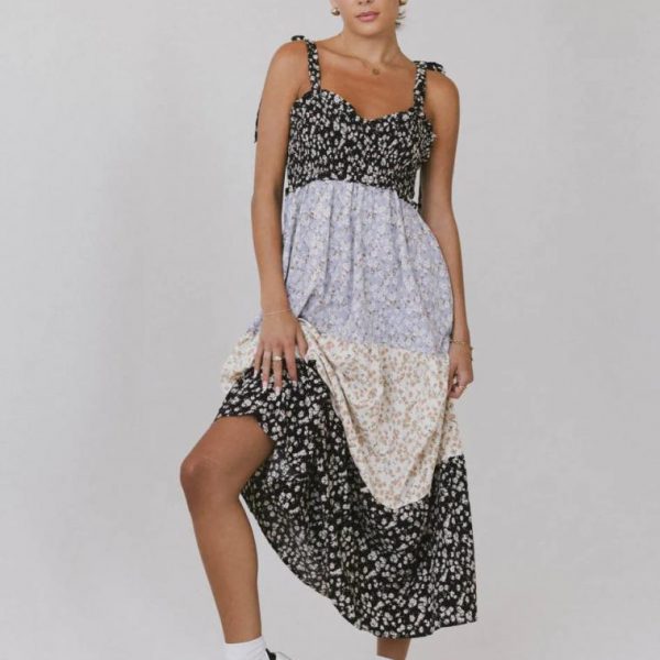 Ruffled Sweetheart Neckline Adjustable Tie Straps Smocked Bodice Three Tiered Skirt Two Hand Pockets Ditsy Floral Pattern Slightly See Through Contrast Layers Non Stretch Material 95% Polyester, 5% Spandex Hand Wash Cold, Lay Flat to Dry Model Info Height: 5’9″ Wearing Size: Small