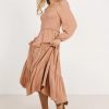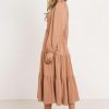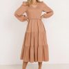 DRESSES | Bohme Womens Smocked Tiered Midi Dress in Pink