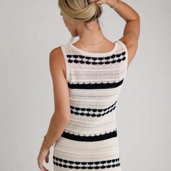 V Neckline Sleeveless Crochet Slightly See Through Stretch Material 100% Polyester Hand Wash Cold, Lay Flat to Dry Bodysuit Lining Not Included Model Info Height: 5’7″ Wearing Size: Small Measurements: Bust: 31″, Waist: 28″, Length: 47″ **For more specific information on the product, please feel free to email us at webteam@ bohme