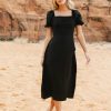 Square Neckline Short Puff Sleeves with Elastic Cuffs and Shoulders Pleated Bodice Left Zipper Closure Front Slit Self: 85% Rayon, 15% Nylon; Lining: 100% Polyester Hand Wash Cold, Lay Flat to Dry  Model Info  Height: 5’7″  Wearing Size: Small  Measurements: Bust: 33″, Waist: 27″, Length: 45″  **For more specific information on the product, please feel free to email us at webteam@ bohme