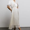 DRESSES | Bohme Womens V-Neck Satin Midi Dress in Cream