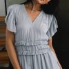 V Neckline Elastic Waist with Ruffle Detailing Short Flutter Sleeves Midi Length with Ruffle Detailing on the Skirt Fully Lined 100% Polyester Machine Wash Cold, Hang or Tumble Dry Low You’ll look and feel beautiful in our Willa Ruffle Dress! We are in love with the lightweight flowy material. This dress was made for date nights and for our bridesmaids. Dress with your favorite heels or boots to create an adorable outfit. Model Info Height: 5’7” Wearing size: Small