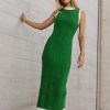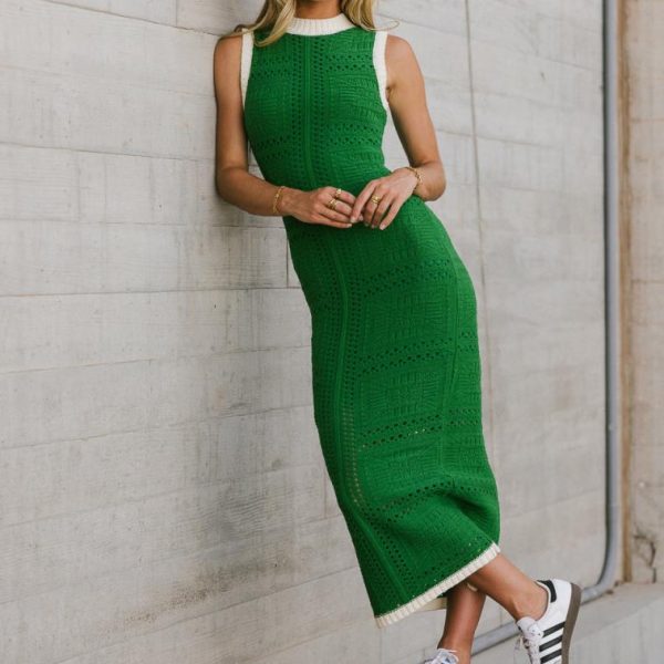 Knit Material Contrast Ribbed Trim Subtle Geometric Pattern Mini Dress Liner Keyhole Detail on Back Mock Neck Tank Straps Fitted Body Slit on the Back Self: 100% Acrylic Lining: 100% Polyester Whether you find yourself in Mykonos, Lake Como, or even your own backyard, the Xavia Knit Maxi Dress in Green is a must-have. This fitted dress feels like a vacation on its own. Style this dress with a clutch and some kitten heels. Model Info Height: 5’7” Wearing Size: X-Small Fit: True To Size