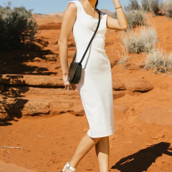 Square Neckline Sleeveless Stretch Ribbed Material Lined 73% Polyester, 22% Rayon, 5% Spandex Hand Wash Cold, Lay Flat to Dry Model Info Height: 5’8″ Wearing Size: Small Measurements: Bust: 30″, Waist: 25″, Length: 42″ **For more specific information on the product, please feel free to email us at webteam@ bohme