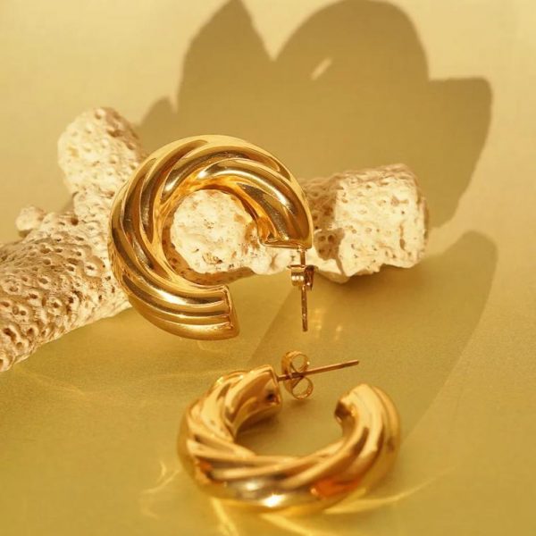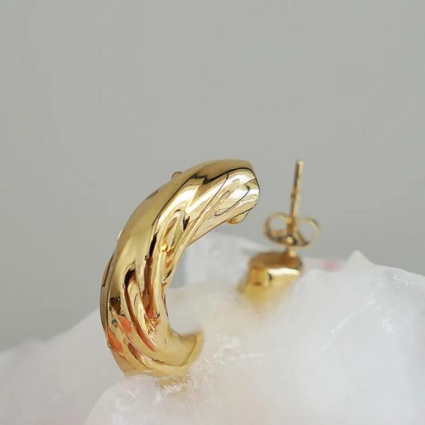 14K Gold Plated Twisted Hoop Earrings Tarnish Free Length: 1.25″, Width: 1.25″ **For more specific information on the product, please feel free to email us at webteam@ bohme