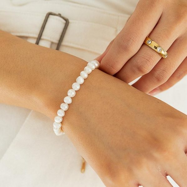 Chain and Faux Pearl Bracelet 14K Gold Plated Toggle Clasp Closure Length: 7 “-8”