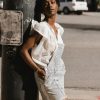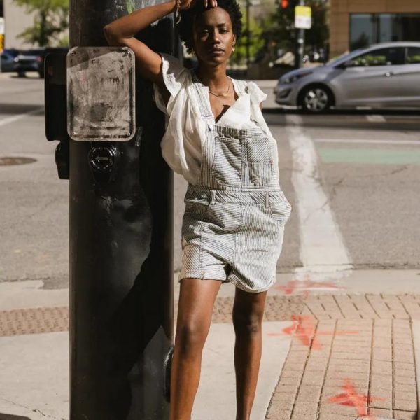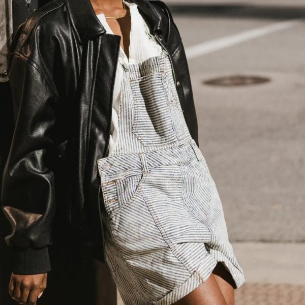 Denim Short Overalls Adjustable Straps with Buckles Three Front Chest Pockets Two Hand, Two Back Pockets Distressed Asymmetrical Seam Panel Detail Rolled Bottom Hem Three Button Side Closures 100% Cotton Machine Wash Cold, Line Dry Model Info Height: 5’5″ Wearing Size: Small