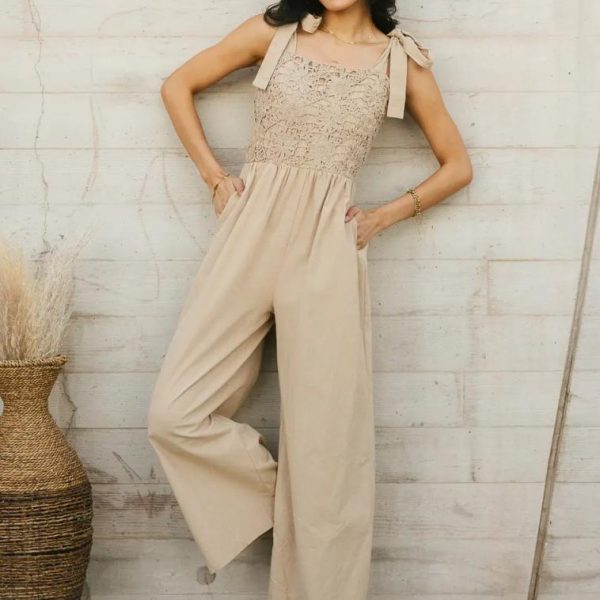 JUMPSUITS & OVERALLS | Bohme Womens Kaia Crocheted Jumpsuit in Latte