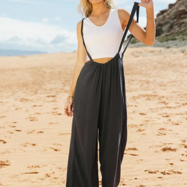 Multi Wear Overall Pants Adjustable Tie Straps Two Front Pockets, No Back Pockets Wide Leg 100% Rayon Hand Wash Cold, Hang Dry Model Info Height: 5’7″ Wearing Size: Small