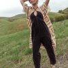 Halter Top Keyhole Neckline Elastic Gathered Under Bust Tapered Leg with Elastic Cuff 22″ Straps Stretchy Material 100% Cotton Machine Wash Cold, Hand or Tumble Dry Low  *Mineral wash garments are uniquely dyed and may present variations. For days spent in, the Trixie Jumpsuit in Black will be your go to. This cozy one piece looks great alone, or with a layering top underneath. Pair with some gold earrings some comfy slides and a messy updo. Model Info Height: 5’8″ Wearing Size: X-Small