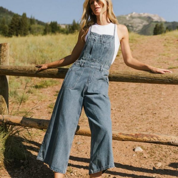Denim Overalls Adjustable Waist and Shoulder Strap with Tie Two Front And Back Pockets Overall Front Pocket Side Button Closure Cropped Pant Length 81% Cotton, 9% Polyester, 7% Lyocell, 3% Viscose  Hand Wash Cold, Line Dry Model Info  Height: 5’7″  Wearing Size: Small