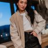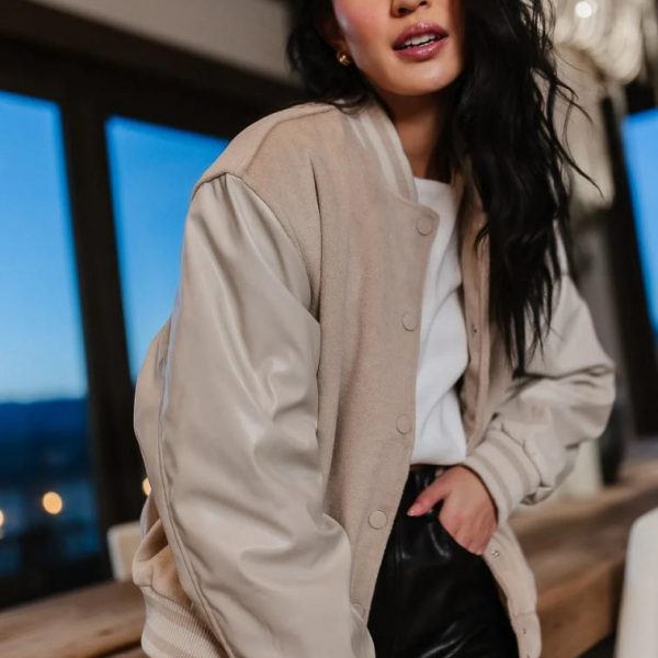 Ribbed Neckline Long Vegan Leather Sleeves Front Button Closure Two Hand Pockets Slightly Padded Lined Shell: 90% Polyester, 10% Rayon; Contrast: 100% Polyurethane, Lining & Fill: 100% Polyester; Rib: 97% Polyester, 3% Spandex Hand Wash Cold, Hang Dry Model Info Height: 5’8″ Wearing Size: Small